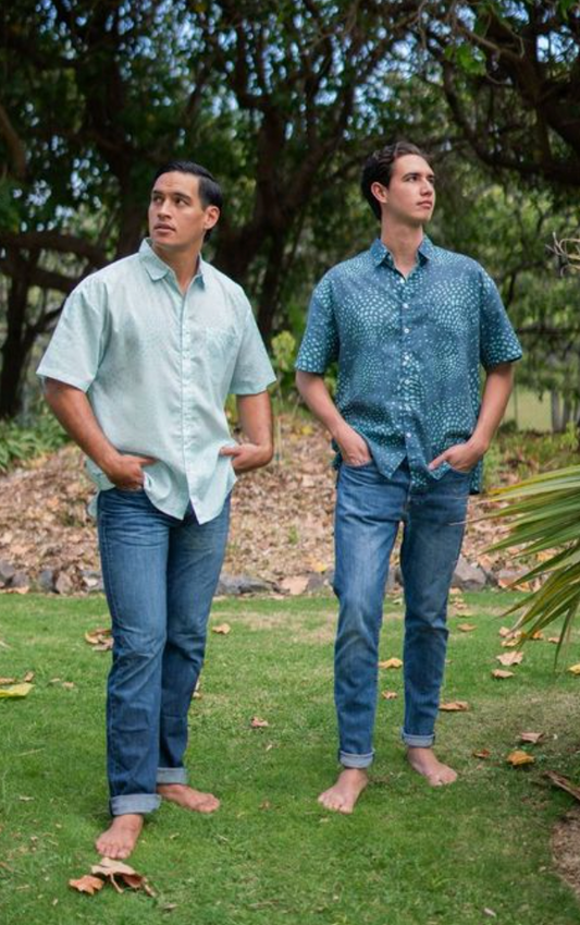 • SALE PŌʻALIMA Menʻs Aloha Shirt in Hihīwai KAI KO'ELE