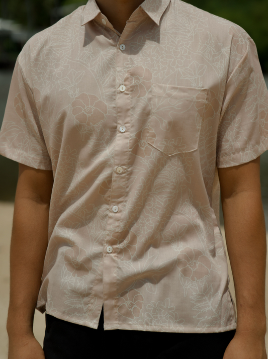 PŌʻALIMA Menʻs Aloha Shirt in MAKAHIKI BROWN