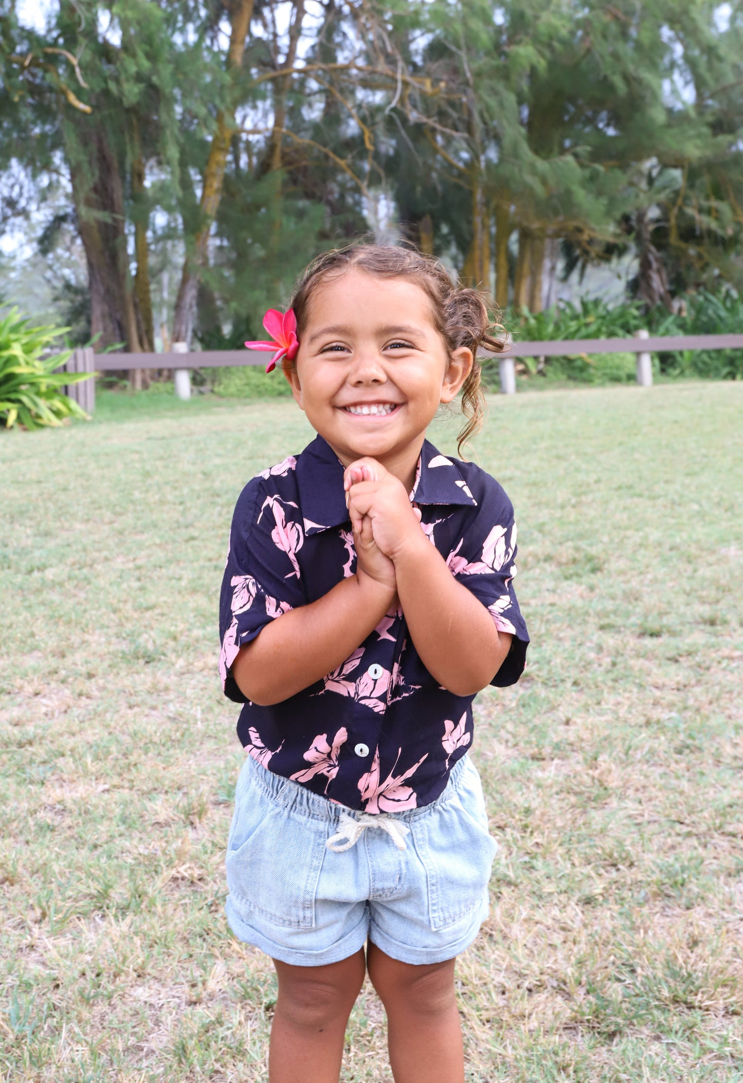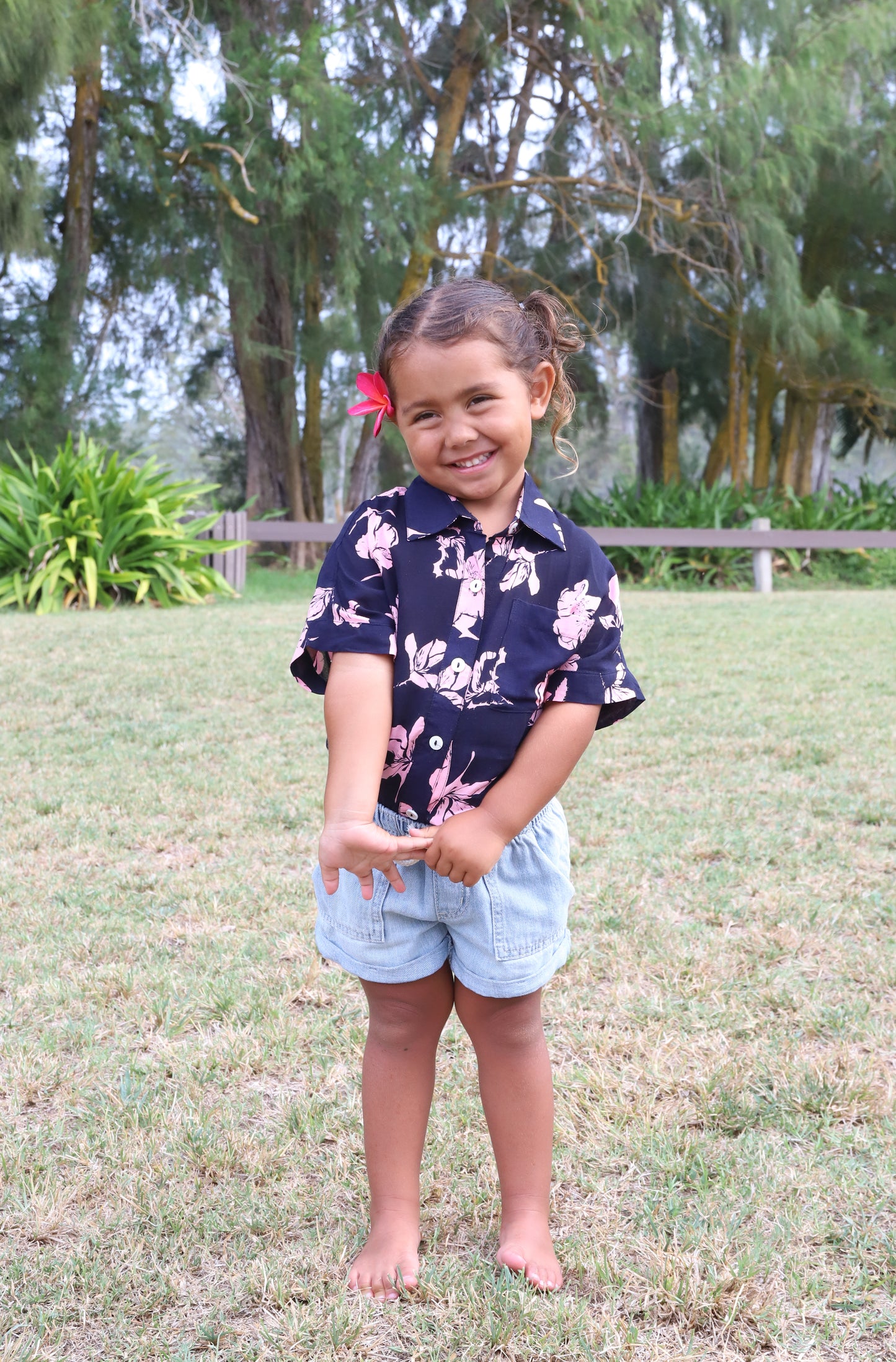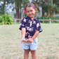 Little girlʻs version of the Womens Charlie blouse. A casual button down top for everyday wear. Loose and cool for those warm days. Made from 100% Rayon.