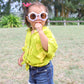 Little girlʻs version of the Womens Charlie blouse. A casual button down top for everyday wear. Loose and cool for those warm days. Made from 100% Rayon.